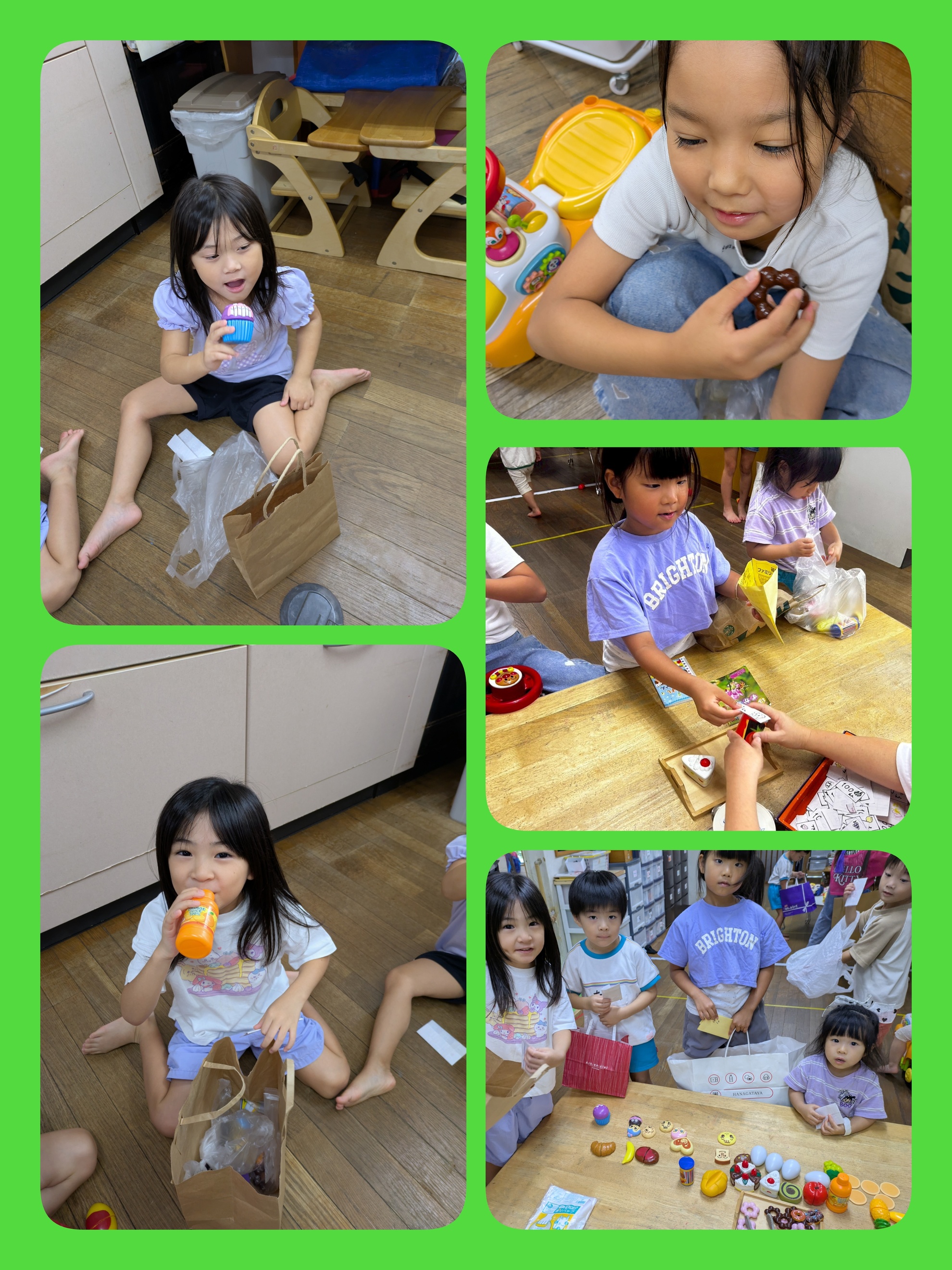 10月4日(土)お買い物ごっこ (人*´∀`)。*゚+ お店屋さんとお客さんに分かれて お買い物ごっこを楽しみました 『すみません これください』 『はい ○○円です』 (お金を出して)『お願いします』 『ありがとうございます』のやりとりが自然に広がり楽しいお買い物風景でした 最後は買ったものでパーティーを楽しみました(*˘︶˘*).。*♡ カテゴリー:みそらブログ 投稿日:2025年10月04日 前へ次へ