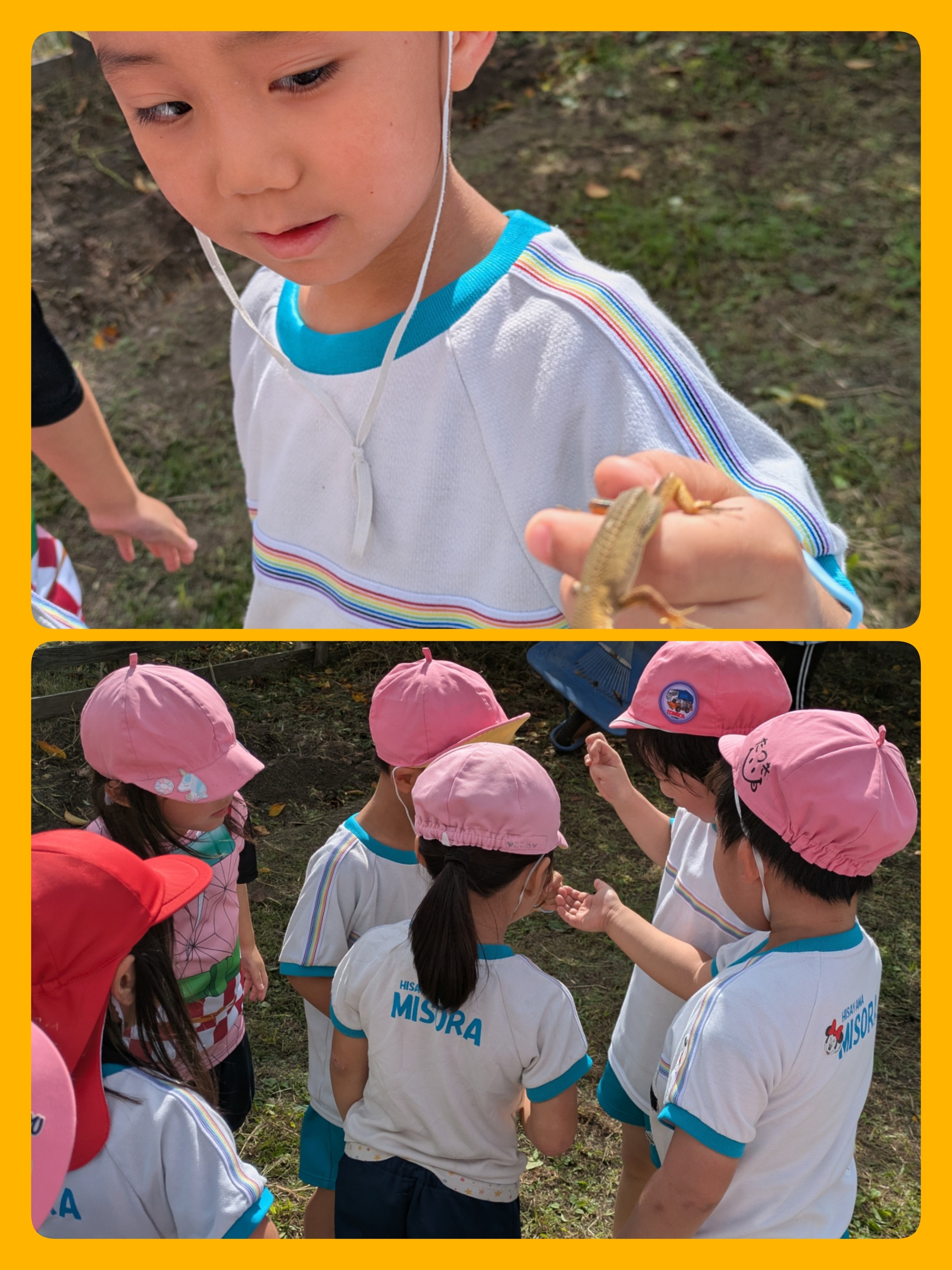 カナヘビの赤ちゃんを見つけて皆で見たり…触ったり…ふれあい動物園さながらでした☆