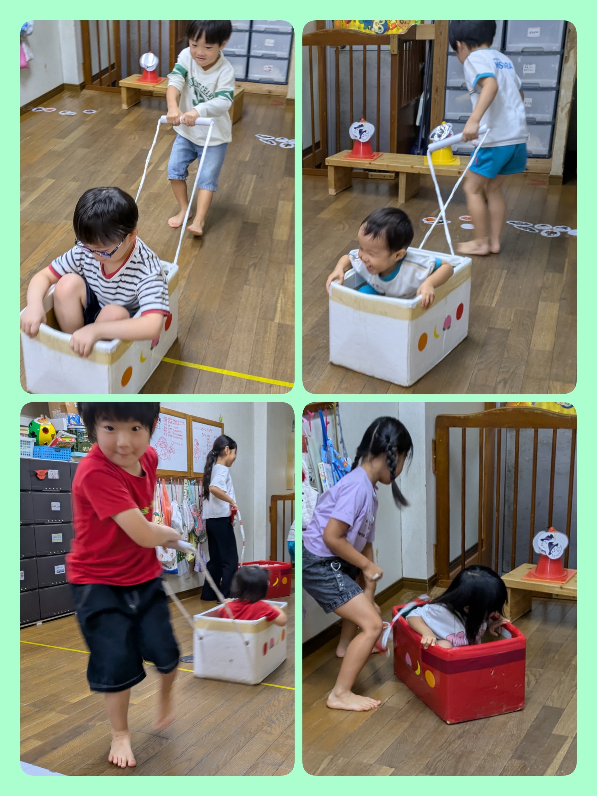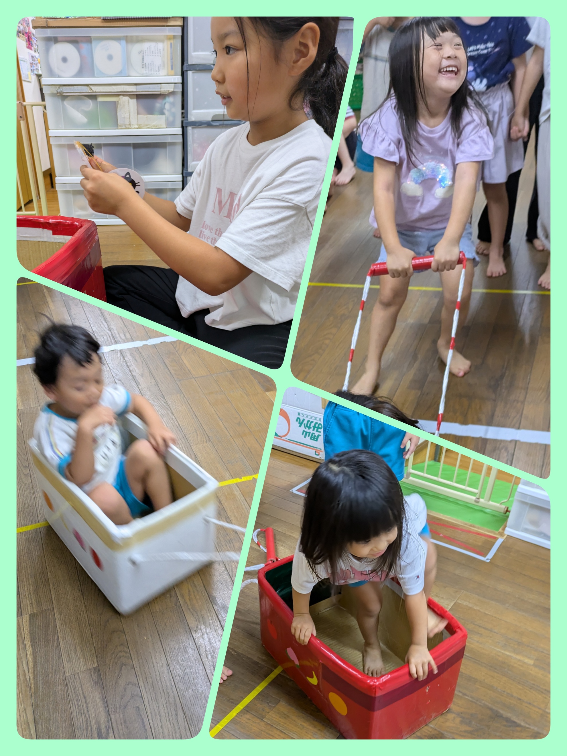 10月18日(土)運動会ごっこᕙ (° ~ ° ~) 子ども達からのリクエストにお応えして朝から運動会でしたダンスをしました。その流れで 楽しかった競技をする事になりました お寿司レースや カート競走 ・ 玉入れを男の子チームと女の子チームに分かれて楽しみました 楽し過ぎて写真を誰も撮ってなくて慌ててカート競走の写真をブログ用に撮りました ごめんなさい( ꈍᴗꈍ) 身体をたくさん動かして楽しんだ1日でした(*˘︶˘*).。*♡ カテゴリー:みそらブログ 投稿日:2025年10月18日 前へ次へ