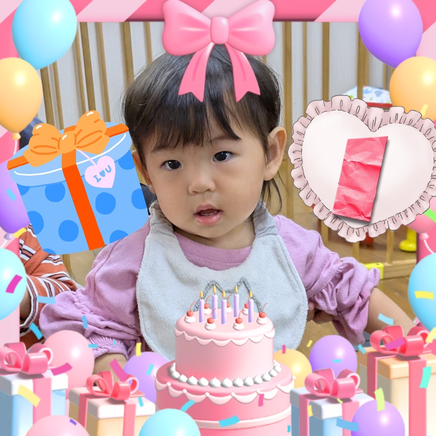 今日 初めてのお誕生日を迎え 1歳になったお友だちです