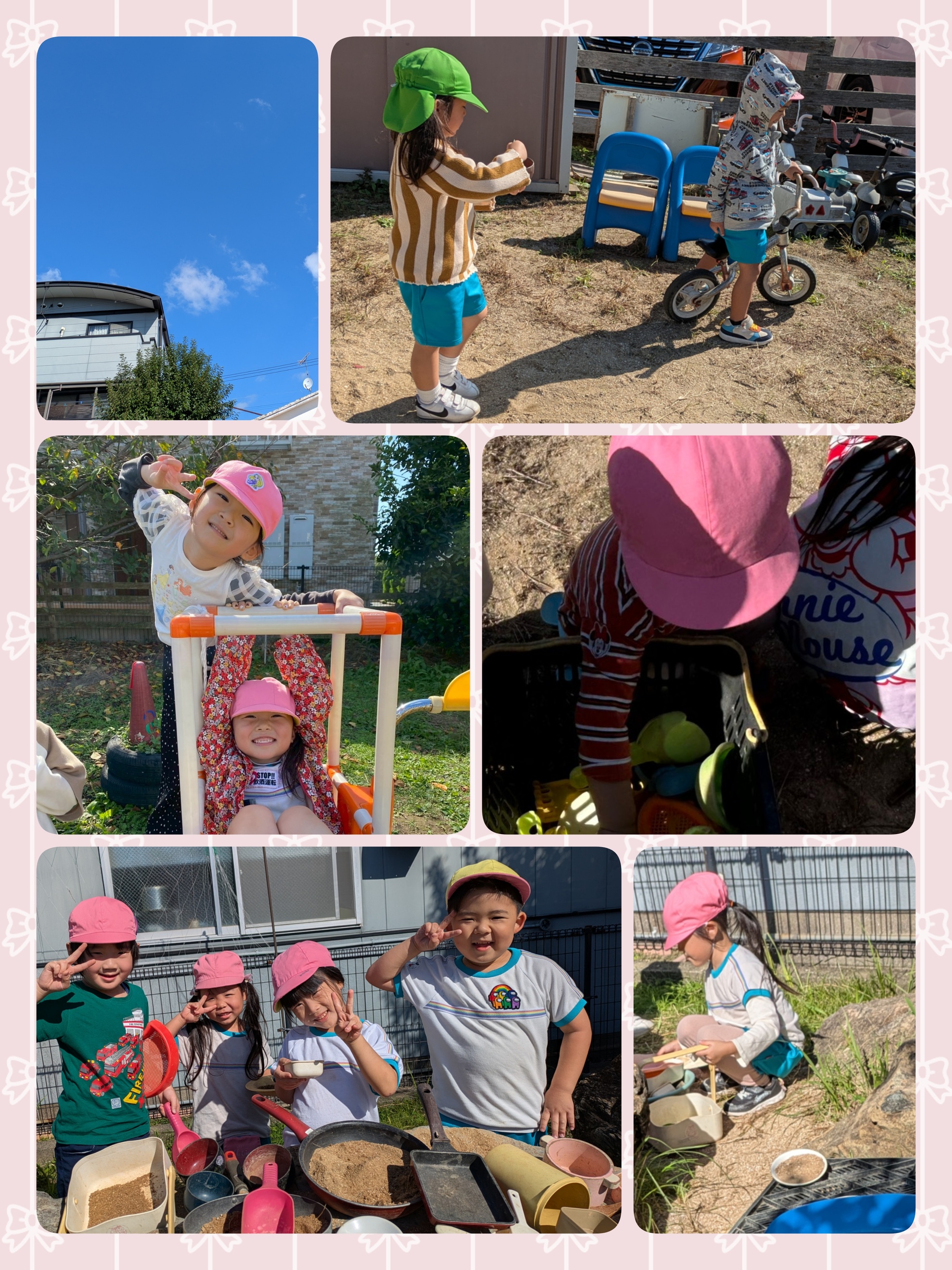 10月23日(木)秋晴れ〜(ノ◕ヮ◕)ノ*.✧ 真っ青な気持ちの良い快晴でしたね お外でたくさん遊びました(◍•ᴗ•◍) 鬼ごっこ・お砂遊び・滑り台・ブランコ…好きな遊びをじっくり楽しみました ごっこ遊びではご飯屋さんが始まり 『いらっしゃいませ』『ようこそ』『こちらへどうぞ』等など… 料亭の様なおもてなしが繰り広げられていました( ꈍᴗꈍ) お料理もキレイでした♡ カテゴリー:みそらブログ 投稿日:2025年10月23日 次へ
