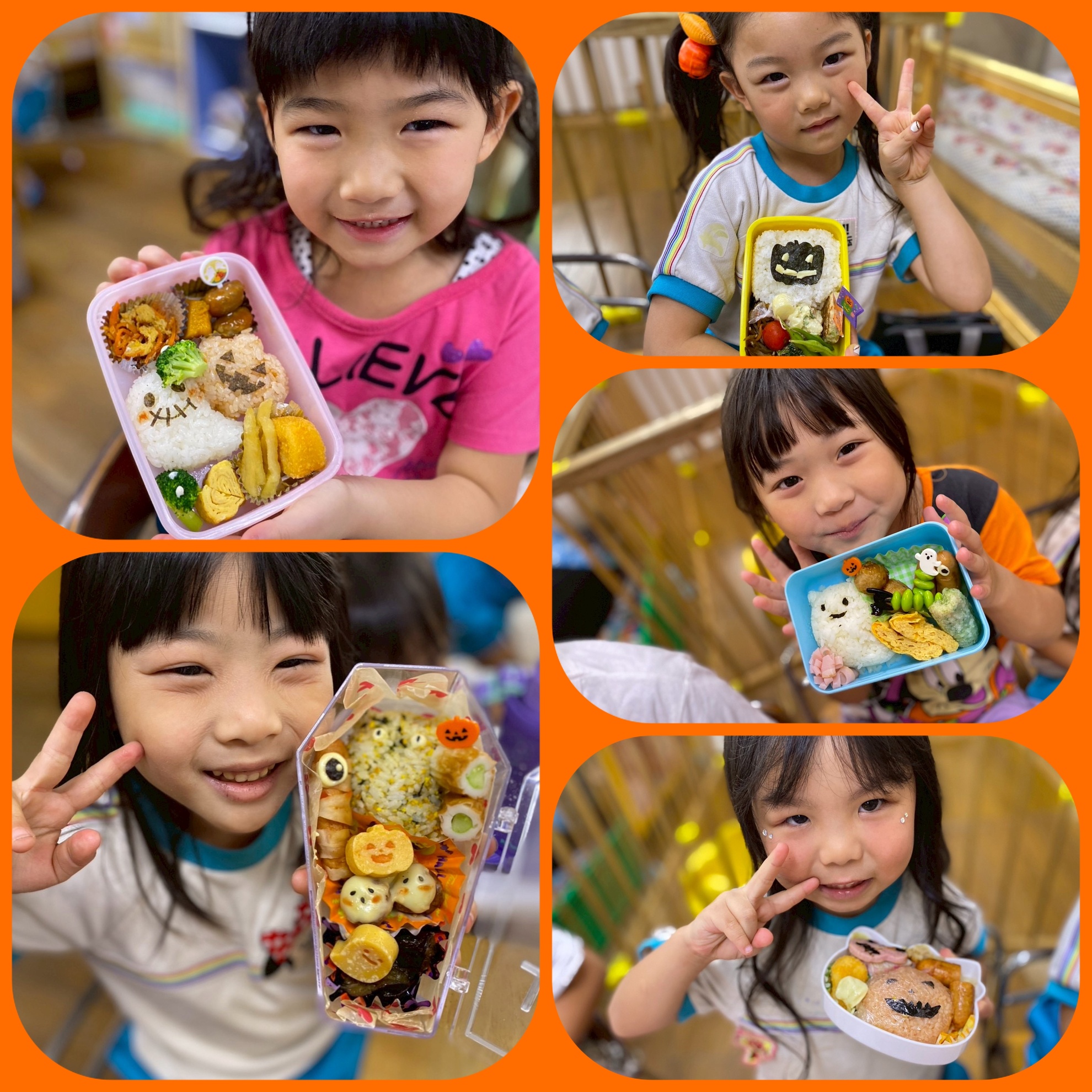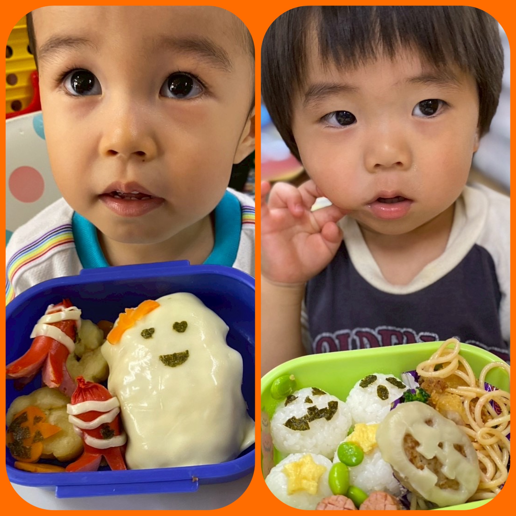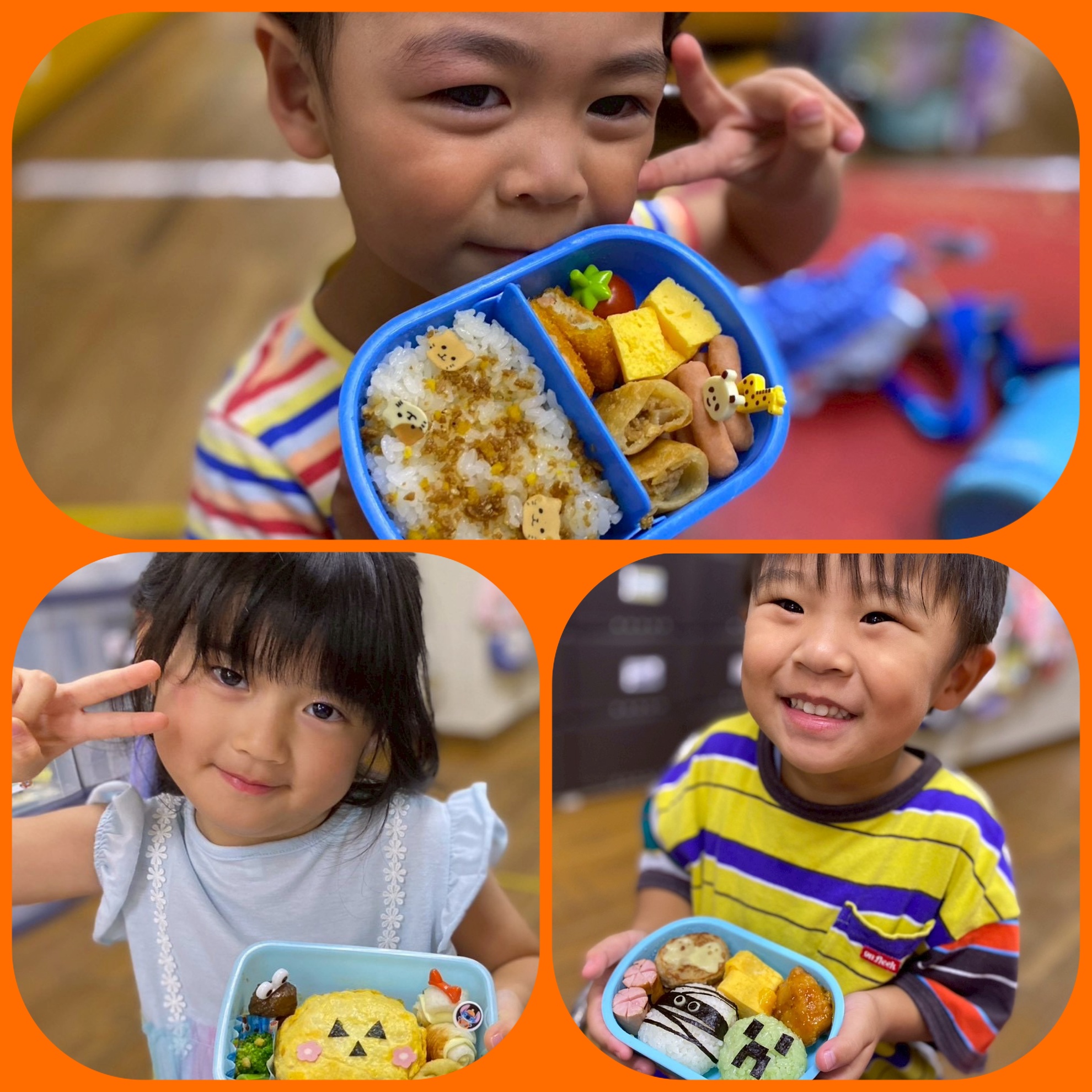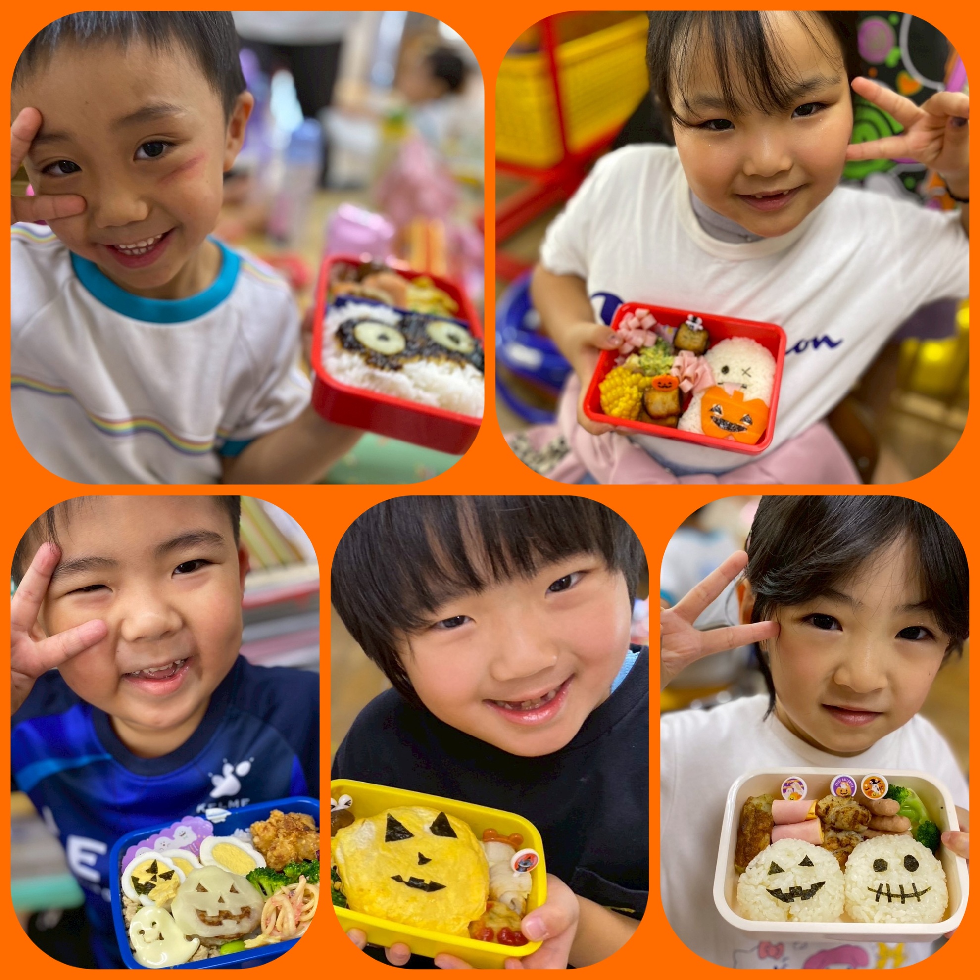 10月24日(金) ハロウィン弁当 ハロウィンパーティーが 終わる頃には お腹がぺこぺこの子供たち! 用意してお弁当箱の蓋を開けて びっくり! 可愛いハロウィン弁当に 子供たちは 大はしゃぎ! 「先生見て!」 「可愛い」などたくさんの 声が聞こえました! 綺麗に完食しました! 素敵なお弁当ありがとうございました! カテゴリー:みそらブログ 投稿日:2025年10月24日 前へ次へ