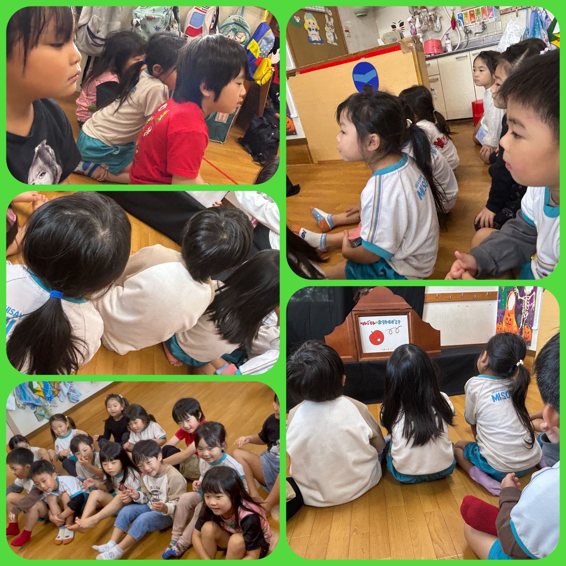 10月28日(火) お話会 今日はお話会の日! 秋にちなんだ 「どんぐり」や「ハロウィン」の お話に大興奮の子供たち 手遊びや絵描き歌など たくさん楽しんでいました! 待っている間は お天気がよかったので お外遊び! たくさん走ってたり おままごとをしたりして 楽しんでいました! カテゴリー:みそらブログ 投稿日:2025年10月28日 前へ次へ