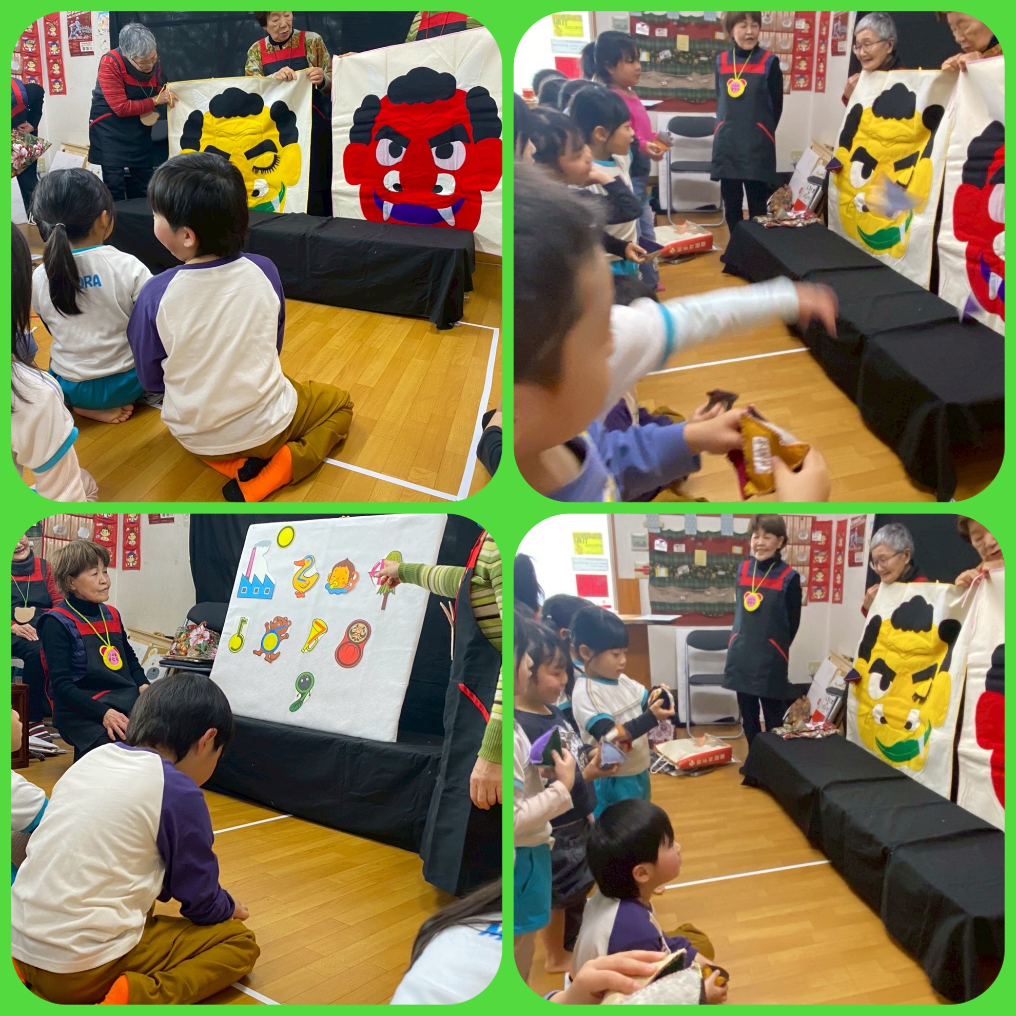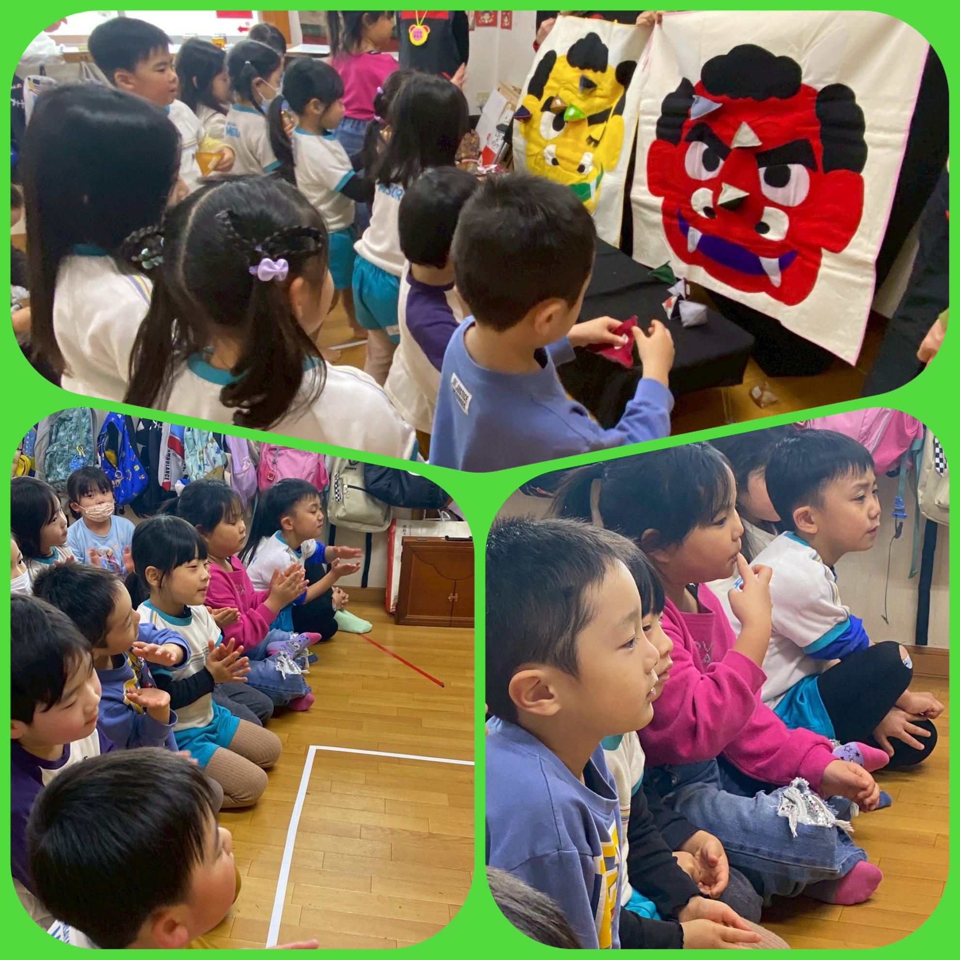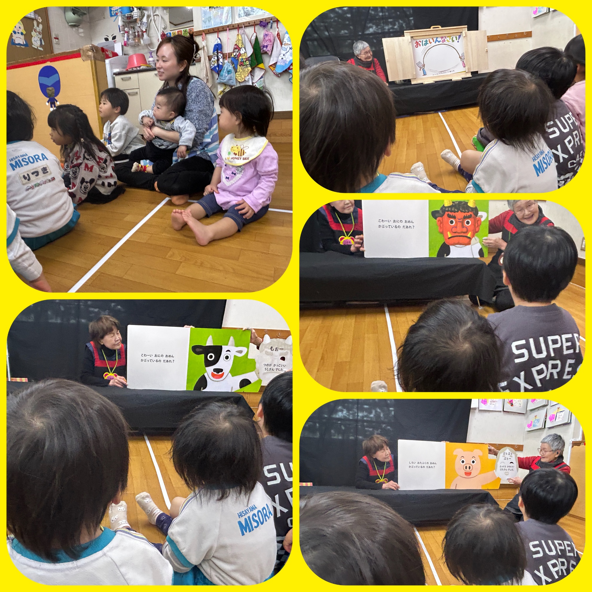 1月27日(火) 〇の会の読み聞かせ 今日は〇の会の 読み聞かせの日でした! 大型紙芝居や 節分が近いので 鬼さんの話など 楽しいお話がいっぱいでした! 最後はみんなで 豆まき! 元気いっぱいに 投げていました! 待っている間は お外遊び! おままごとや 鬼ごっこ しっぽ取りゲームなど 沢山楽しみました! カテゴリー:みそらブログ 投稿日:2026年01月27日 前へ次へ