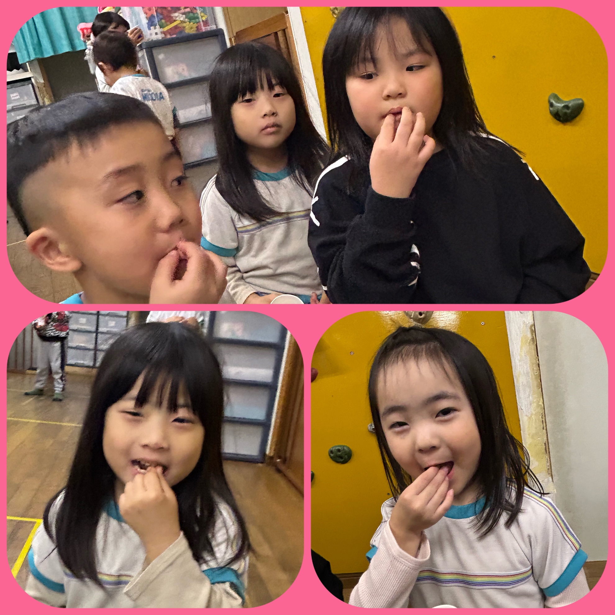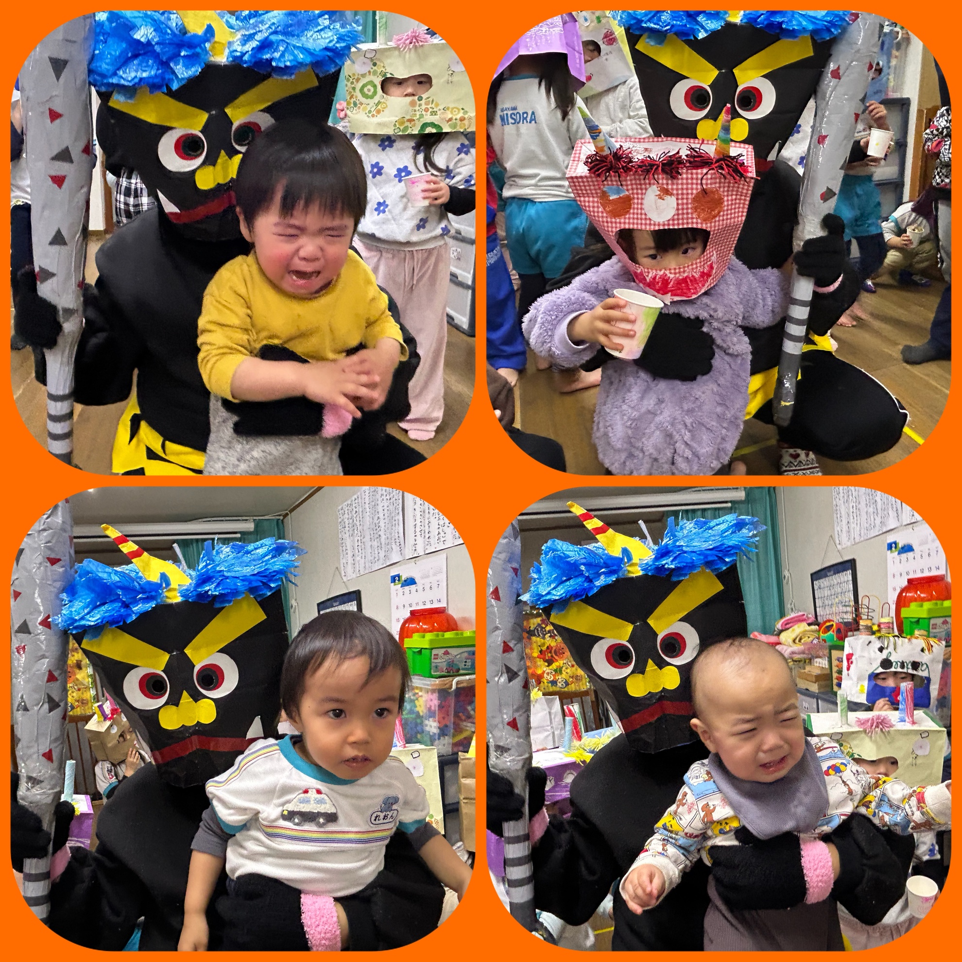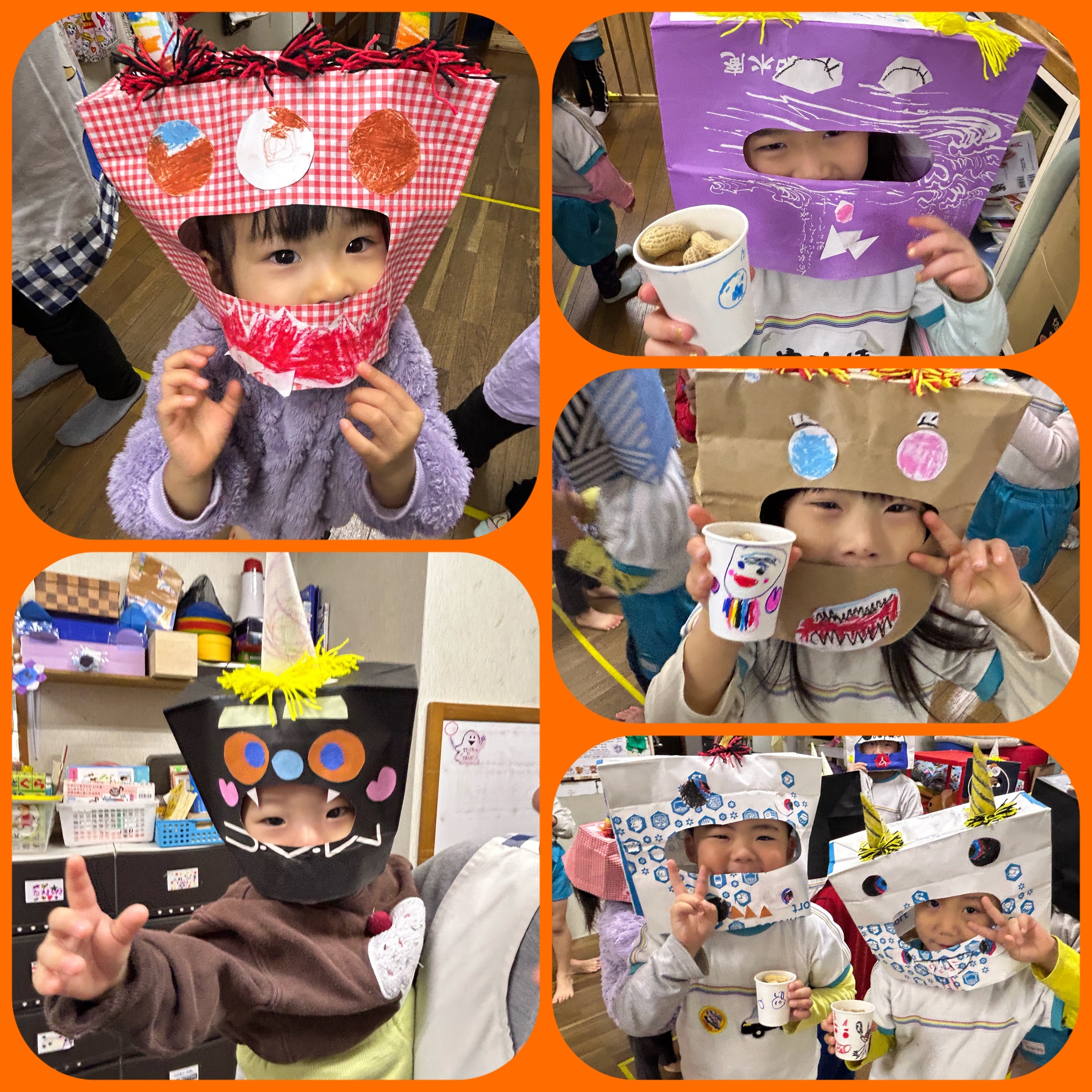 2月5日(木) 豆まき! 今日は待ちに待った 豆まきの日! みんなで製作した 鬼のお面を被って 記念撮影! 可愛く、かっこよく ポーズを決めて いました! お豆を先生からもらって 鬼退治の準備はOK! 鬼の正体がわかっていても 怖いものは怖い子供たち 勇気のあるお友達は前に出て 鬼は〜外 と鬼に豆を投げていました! 怖いお友達は 先生や 豆を投げているお友達の 後ろに隠れて 逃げていました! 泣いちゃうお友達もいたけど みんなで鬼さんをやっつけました! そして みんなの中にいる鬼さんも バイバイして 1年健康で過ごせますようにと お豆を食べました! 楽しい豆まきができました! カテゴリー:みそらブログ 投稿日:2026年02月05日 次へ